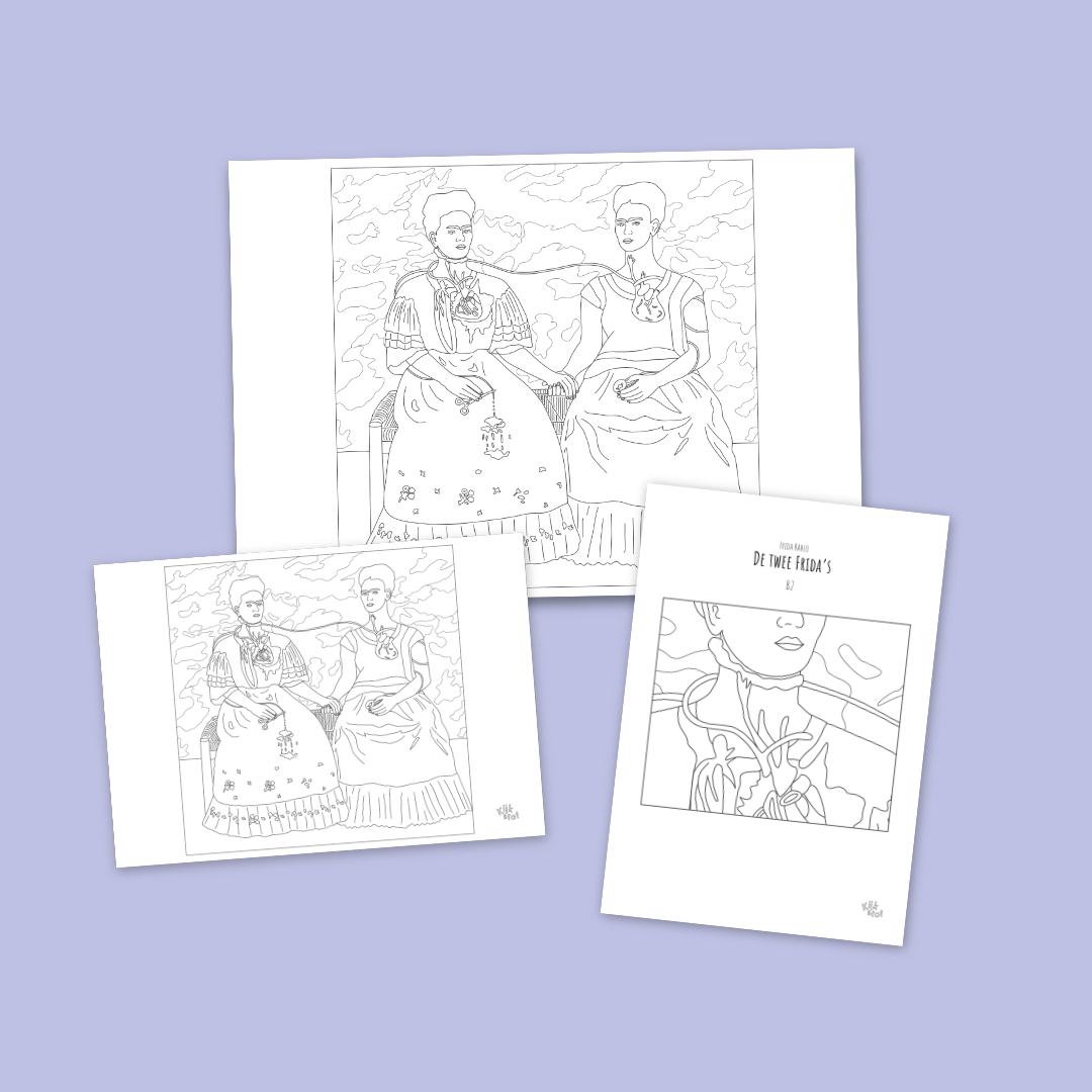 Ben je op zoek naar een creatieve start of afsluiter van het thema Kunst? Maak dan met heel de klas De twee Frida’s Mega Kleurplaat.